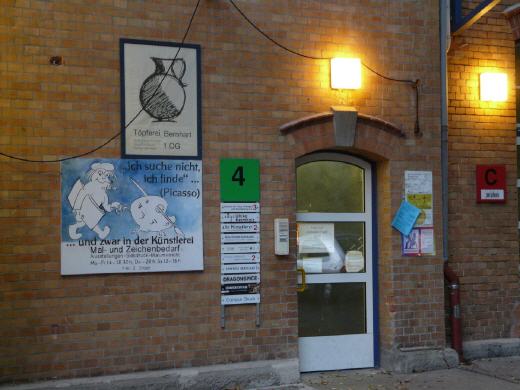 An der Straße gibt es einen Parkplatz. Von dort geht es am Gebäude eine große Treppe hoch. Nach der Treppe geht es links den Durchgang weiter, bis das weiße Gebäude zu Ende ist und ein Backsteinhaus anschließt. Hier ist der Eingang 4 (grünes Schild). Jetzt noch einmal Treppe hoch in den 3. Stock.