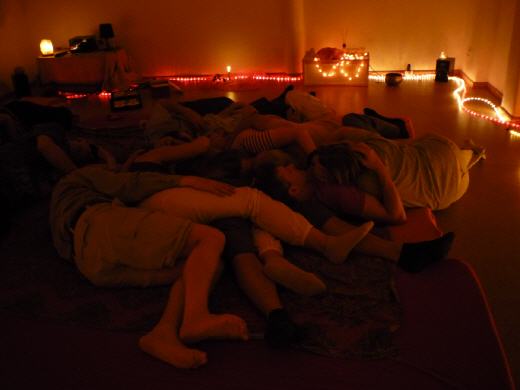 Aufwärmphase: Lockern, aus dem Denken in's Fühlen kommen; mit Musik und Tanz.